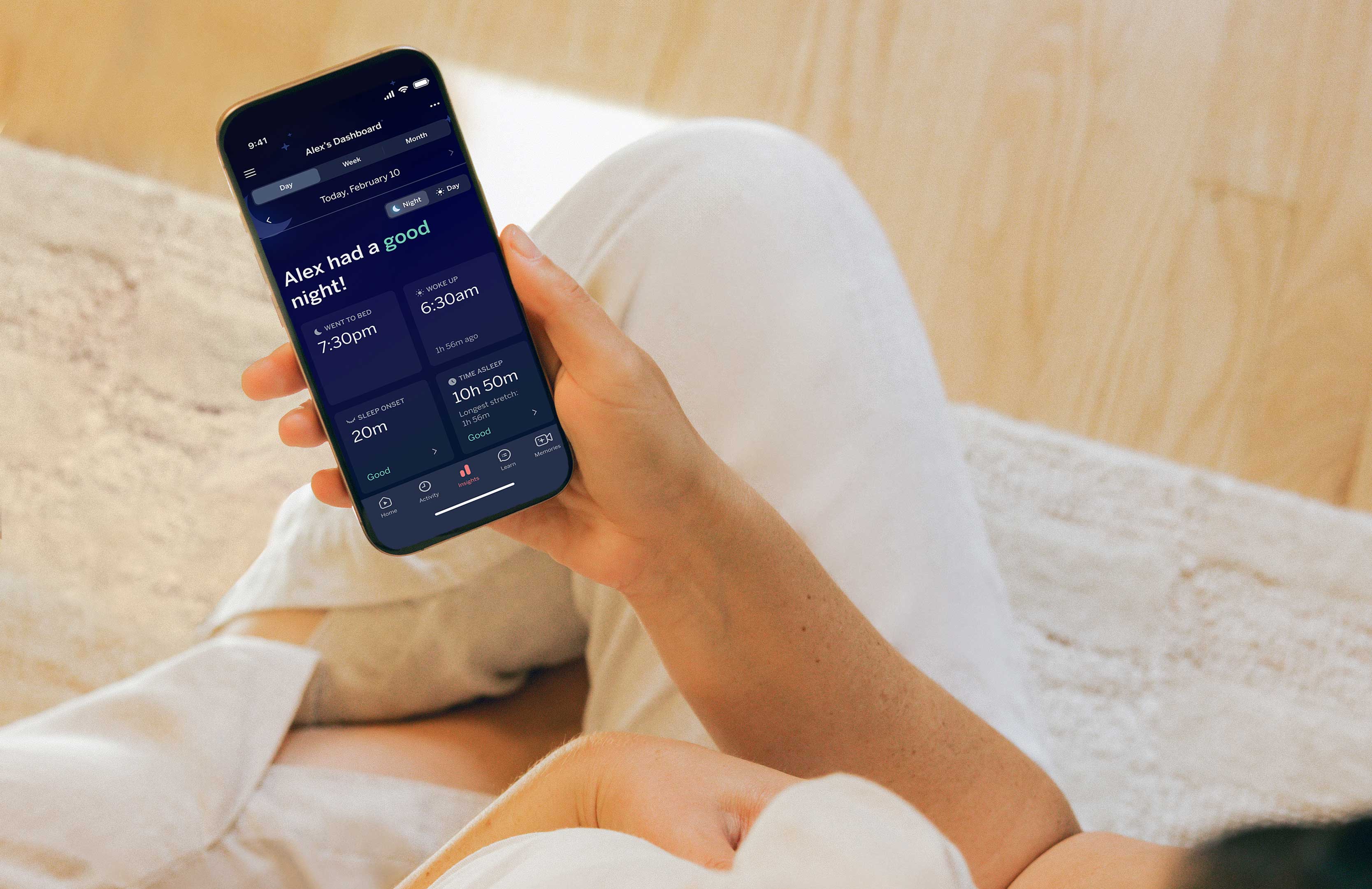 A Nanit subscription gives you access to deeper sleep insights, personalised guidance and advanced features — all managed securely online.